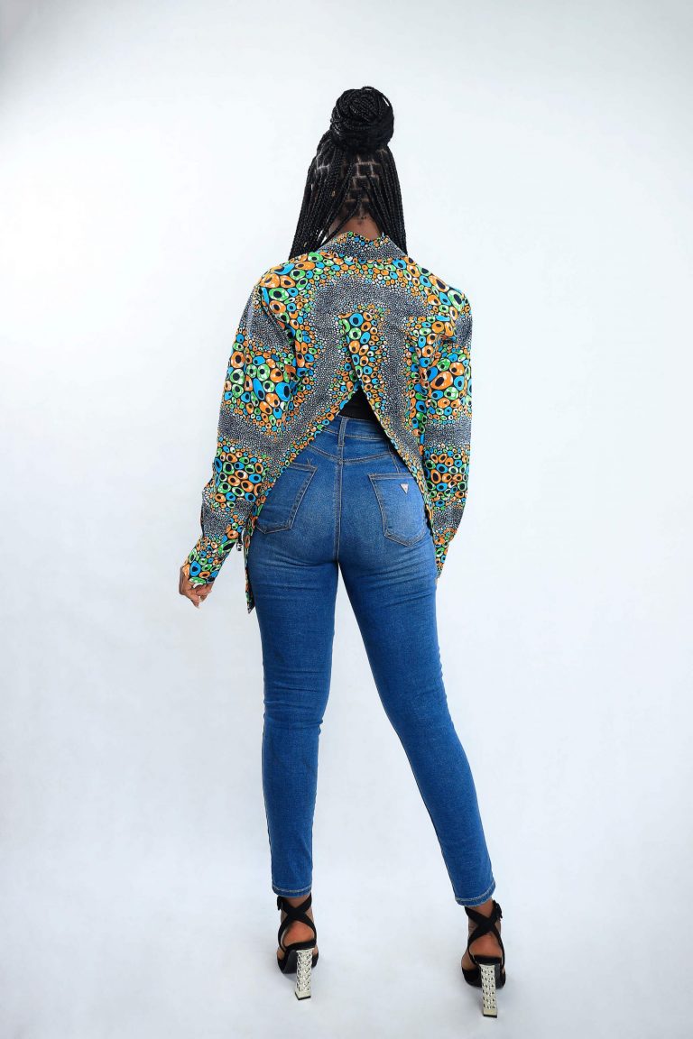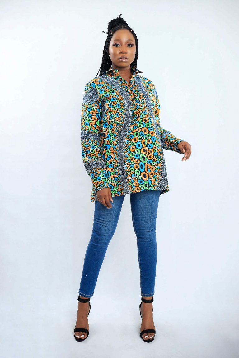 It is Business in front, party at the back with this Shirt. Made with Ankara cotton fabric.