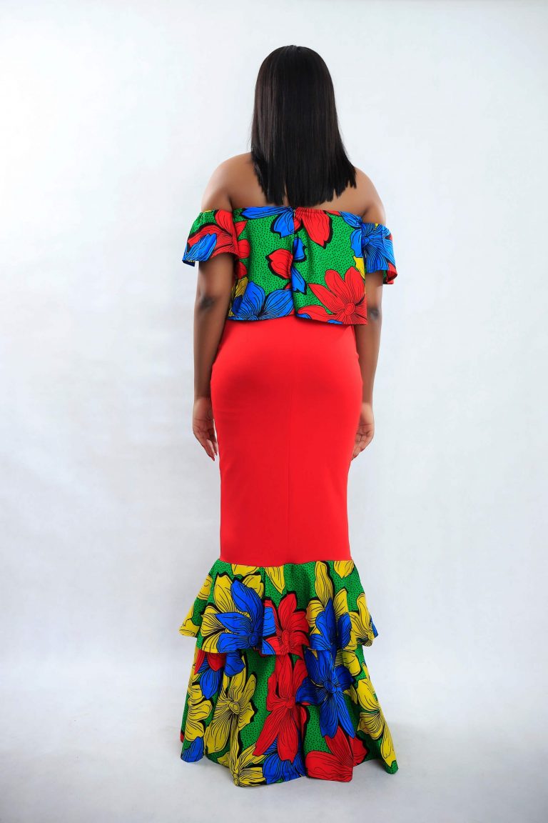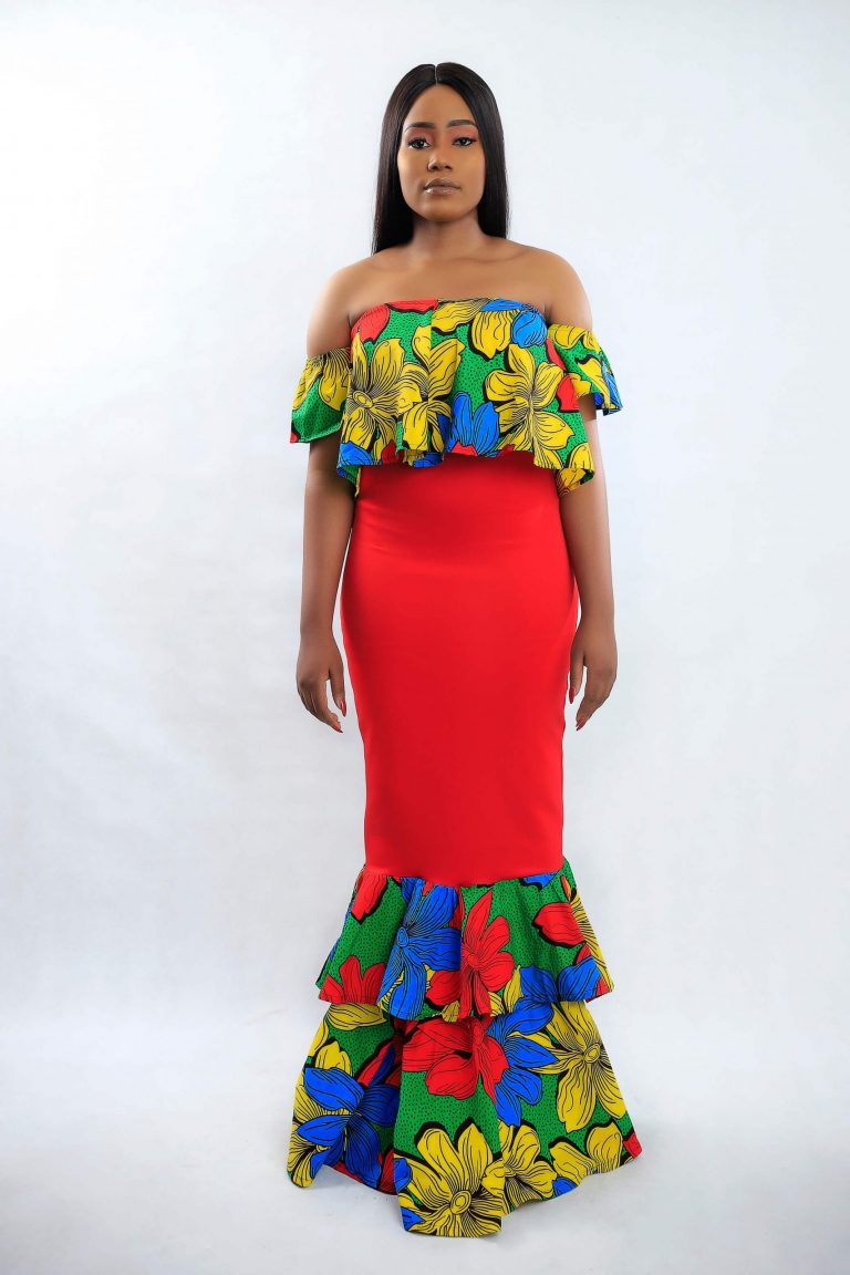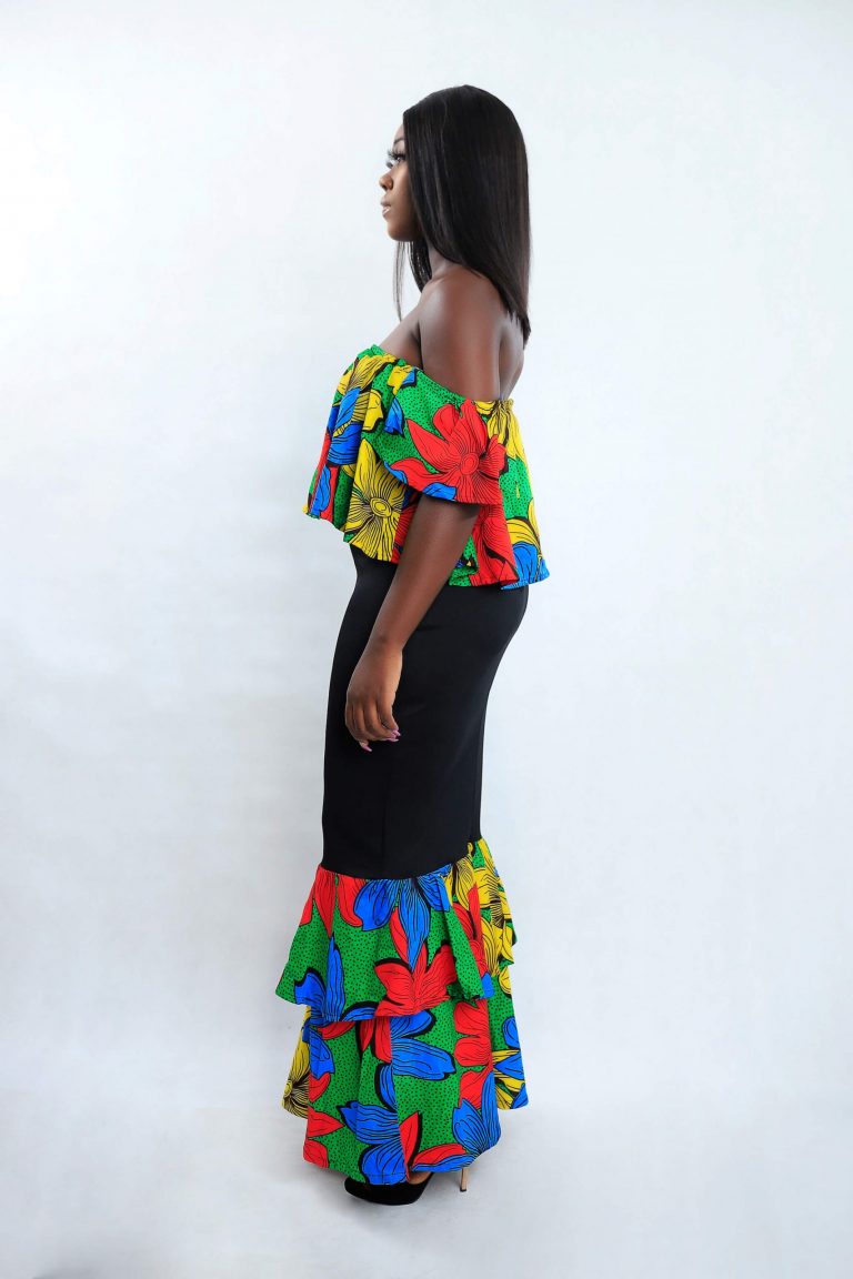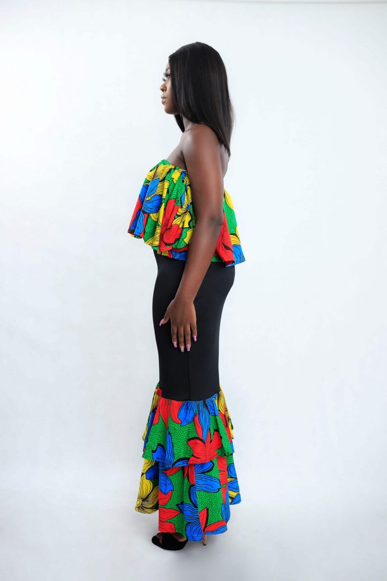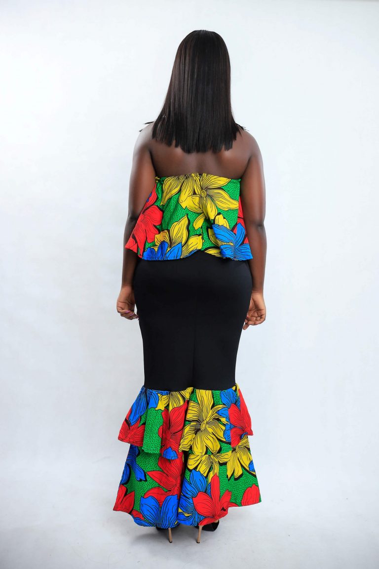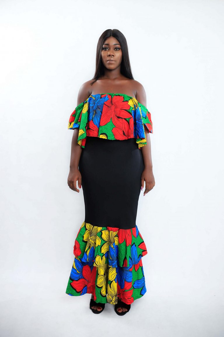 Made with stretchy and Ankara cotton fabric, double flared hem.