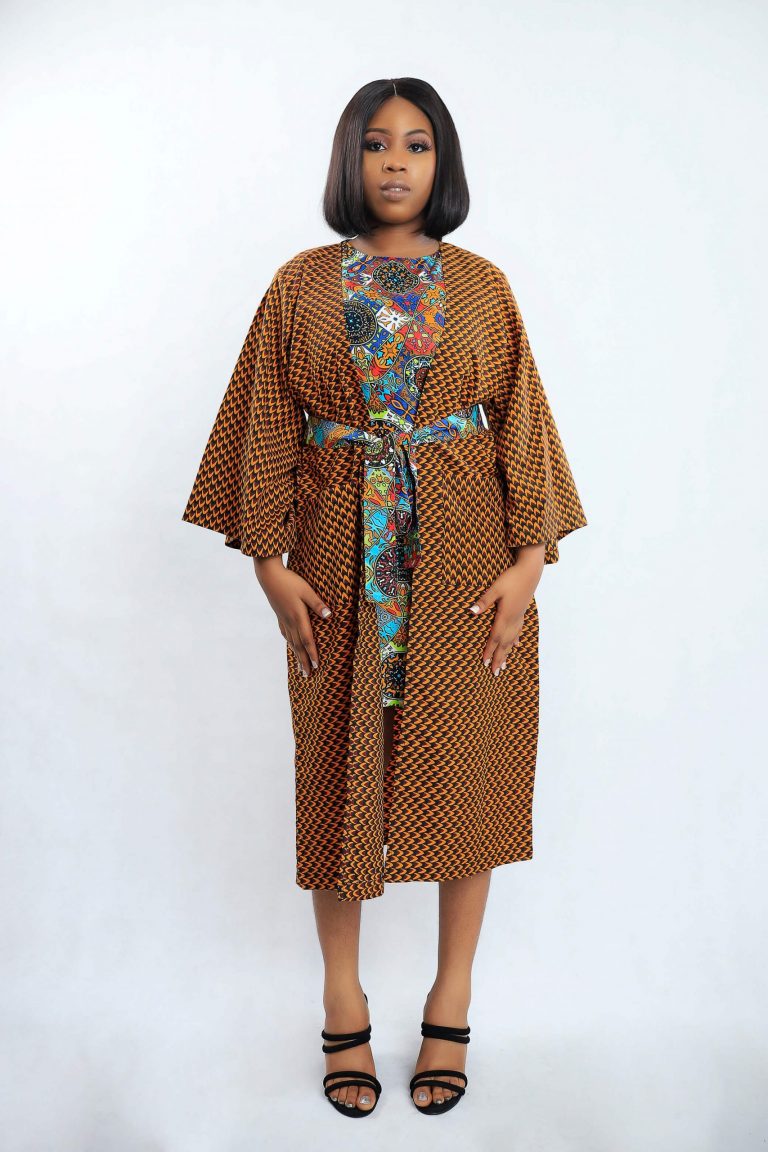 Mixed prints Kimono and sleeveless Dress with detachable belt. Set can be rocked as separates too, giving more value for your money.