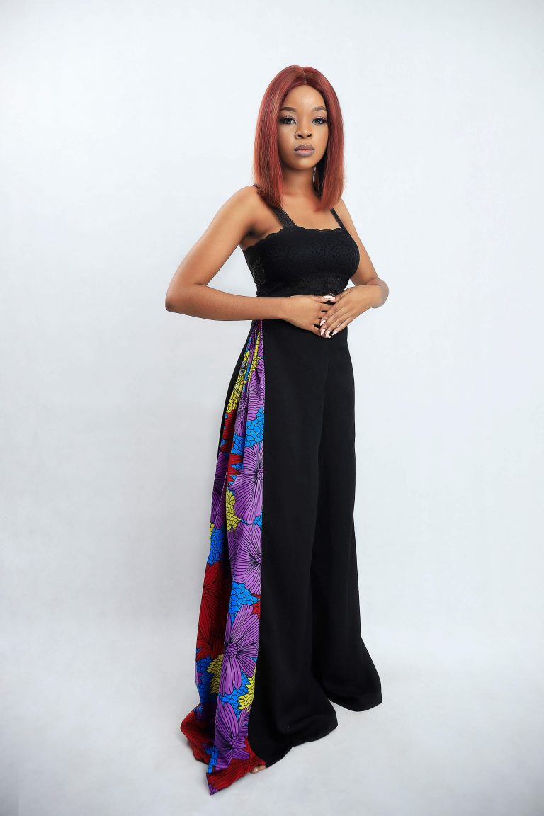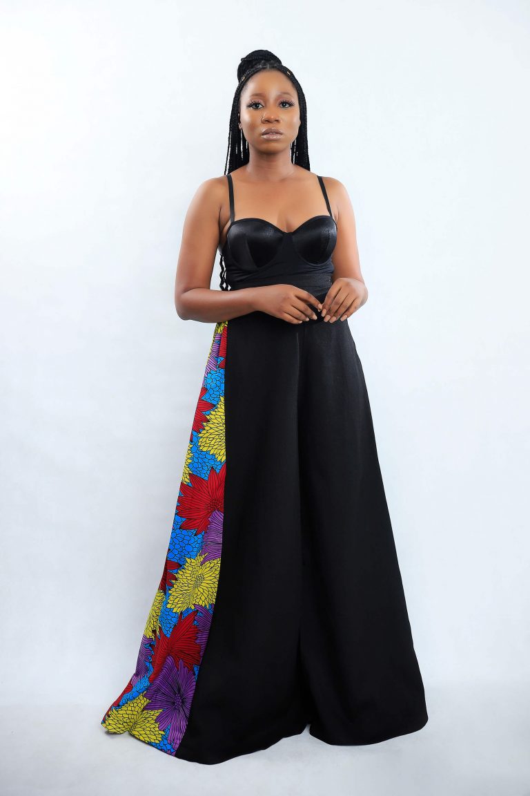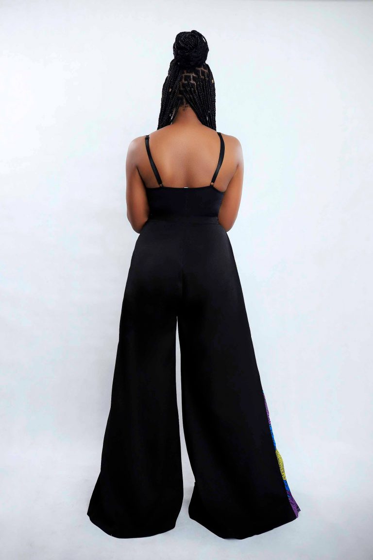 Palazzo pants made with crepe fabric and Ankara pleats on one side.